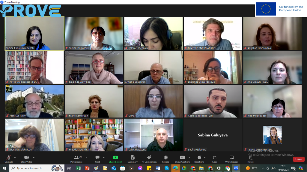 PROVE նախագիծը՝ «Արժեքներին միտված կրթության խթանումը Հարավային Կովկասի բուհերում», դեռ ընթացքի մեջ է և զարգացման փուլում արդեն իսկ նշանակալի ձեռքբերումներ է գրանցել։ Վրաստանի և Հայաստանի գործընկեր բուհերը մշակել և ներկայացրել են կրթական ծրագրի դասընթացի նկարագրիչների առաջին փաթեթը, որը հիմնված է արժեքներին և գիտելիքին միտված կրթության (VaKE) մեթոդաբանության վրա։ Դասընթացի նկարագրիչները մշակվել են նախագծի շրջանակում գործող տարբեր աշխատանքային խմբերի համագործակցության արդյունքում։ Թիմերը հաջողությամբ ավարտել են կրթական ծրագրերի նախնական փուլի մշակումը։